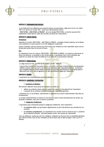 PRO PATRIA69 Rue de Chinon 37190 CHEILL%u00c9 STATUTS www.propatria-officiel.fr
